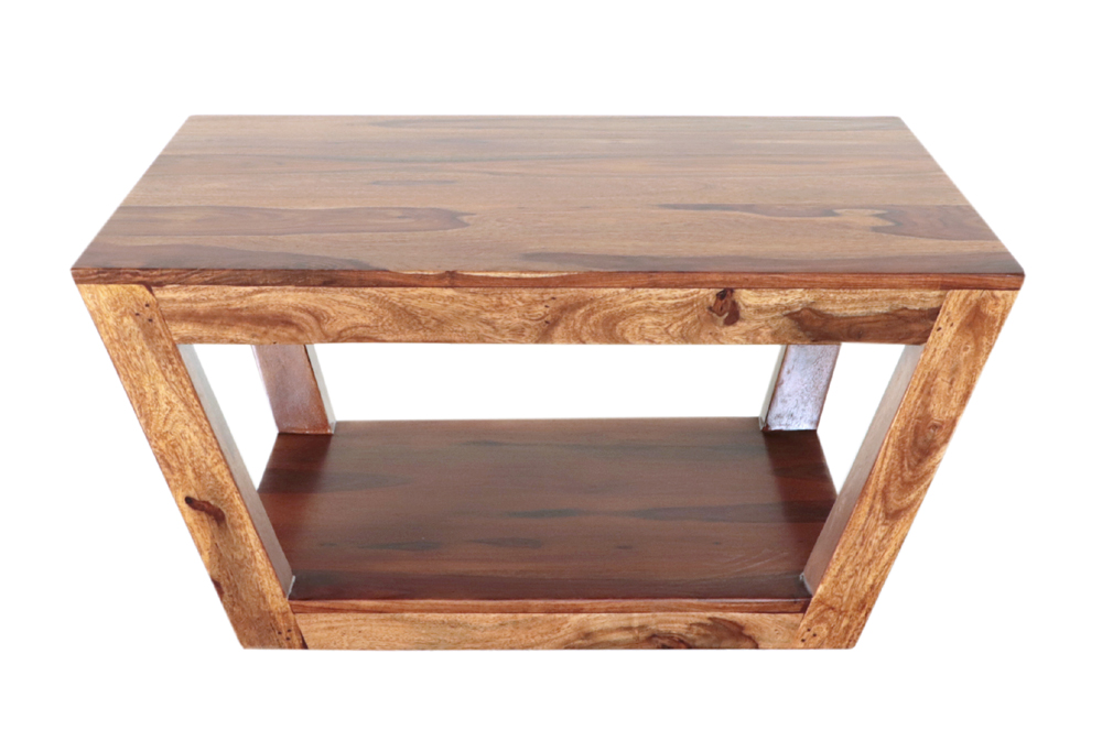The RAMI-COF80 coffee/conference table will add a touch of sophisticated elegance to your living space. This table, which is handcrafted from 100% solid Indian palisander (Sheesham) wood, strikes a balance between durability and beauty. Its dimensions of 80 cm in width, 40 cm in height, and 80 cm in depth make it the ideal focal point for small to medium-sized living rooms.