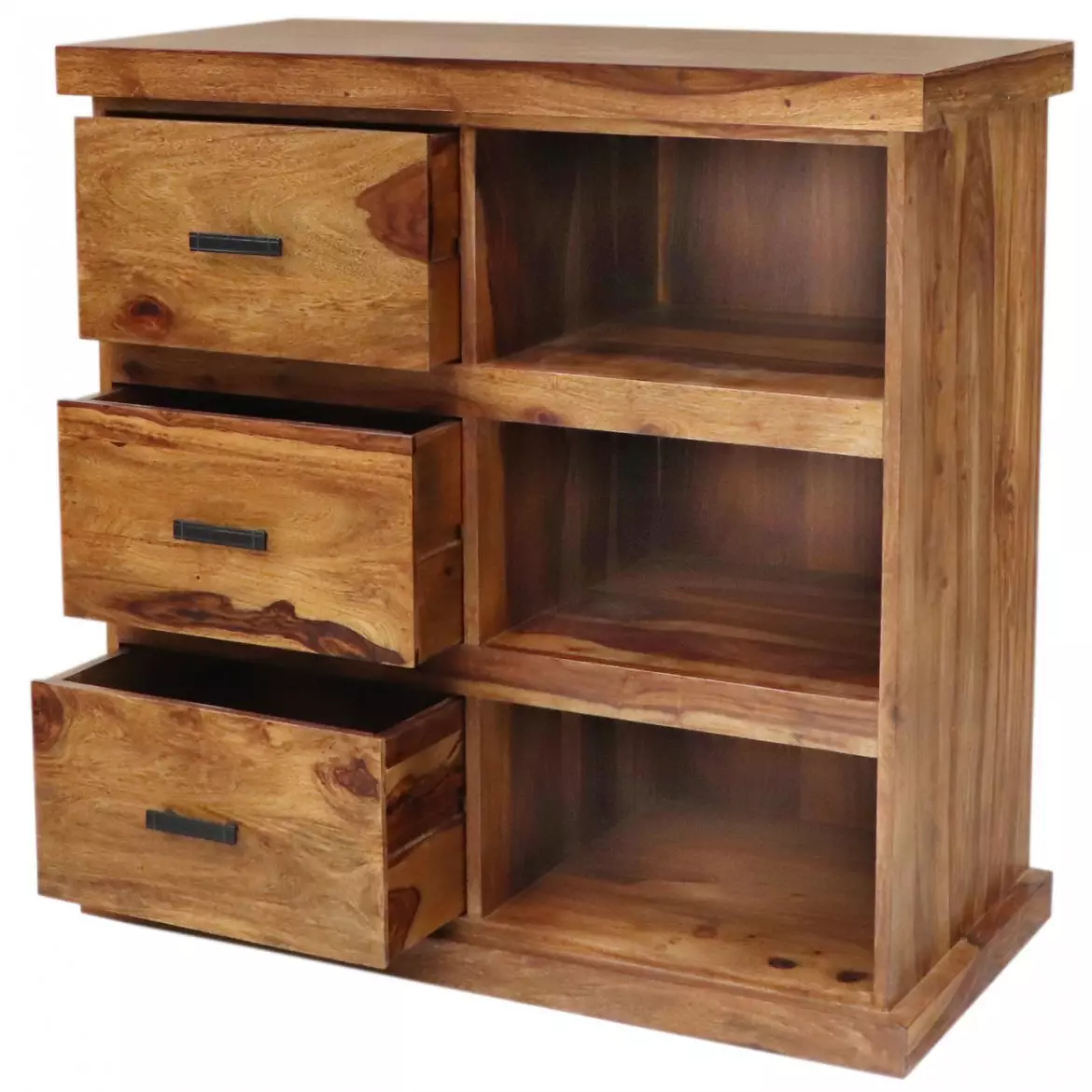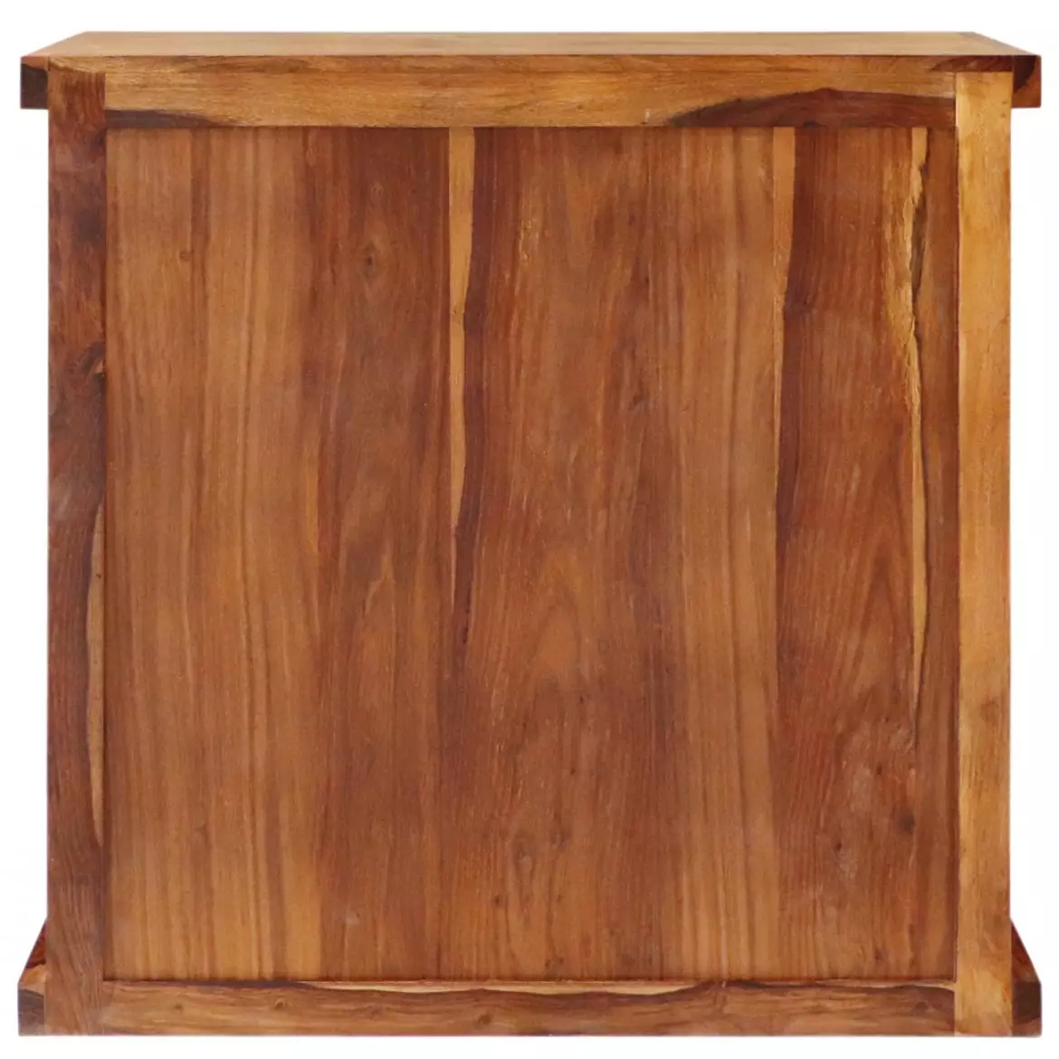 The deep 45 cm profile — the deepest storage unit in the Rami series — provides ample internal capacity, making it a practical replacement for multiple smaller storage items. The rich, natural grain of Sheesham gives every piece a warm, distinct character that no MDF unit can replicate, and the square format sits beautifully in bedroom corners or along hallway walls.