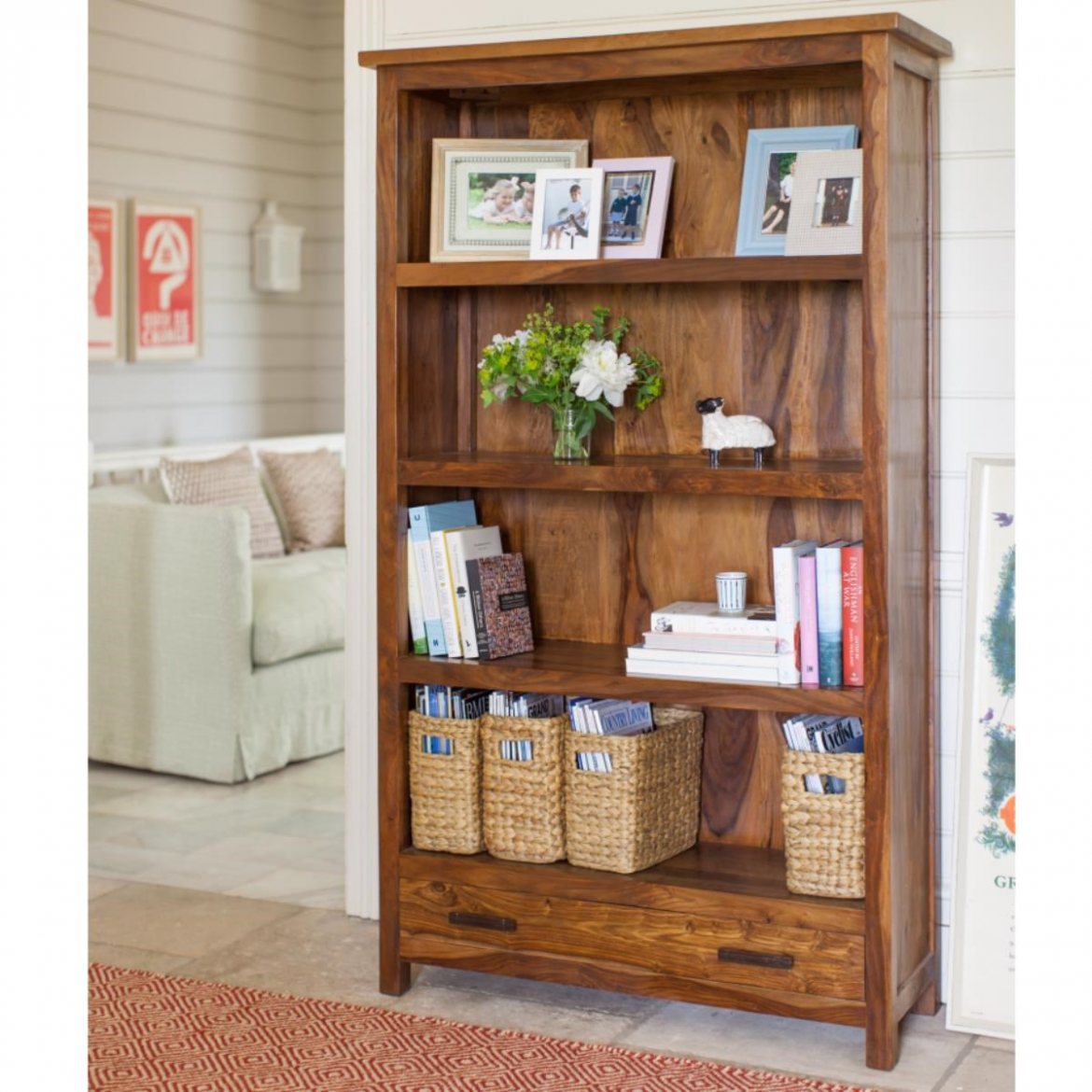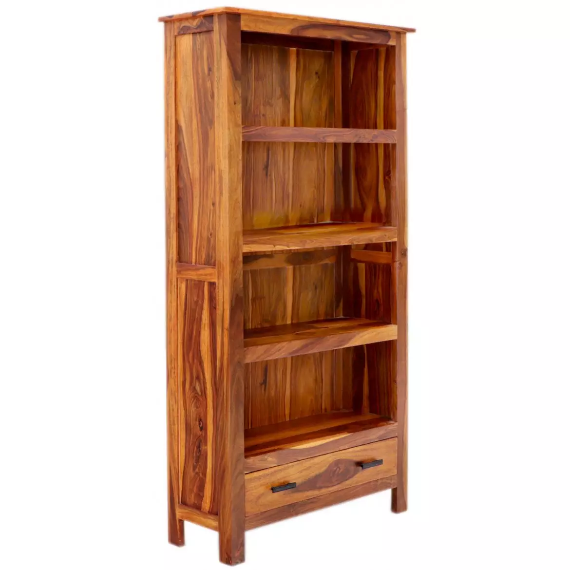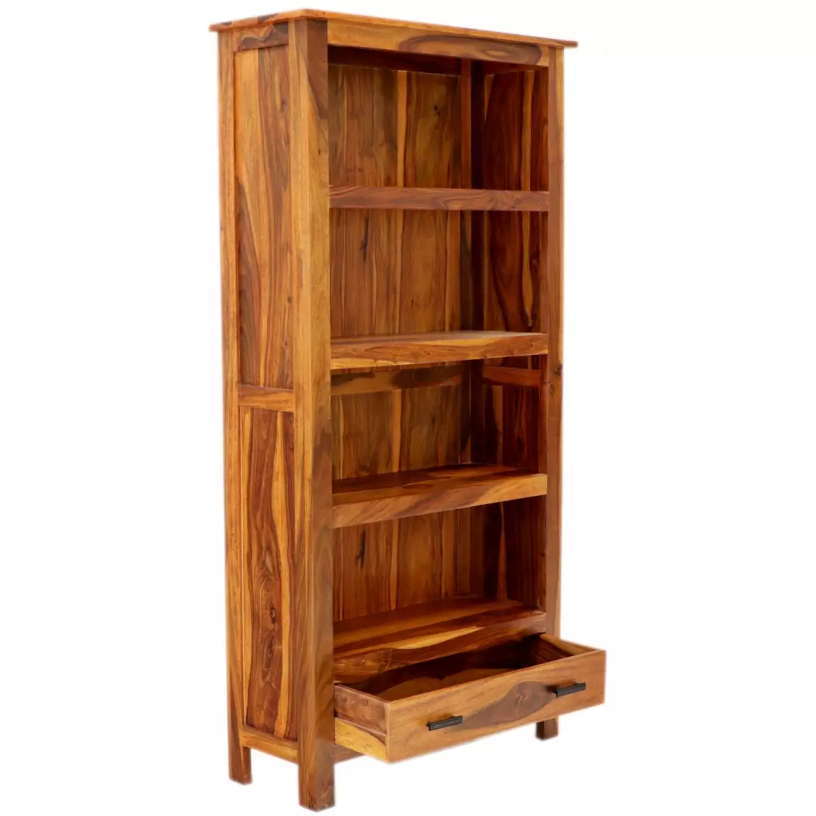 Rami Solid Wood Tall Bookcase with Drawer | Sheesham Wood Book Shelf for Living Room & Study Room