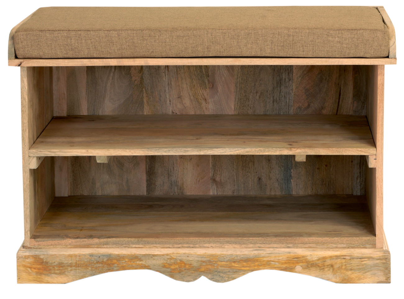 The SITA-BT’s interior shelving, which typically consists of two shelves, allows you to keep your space neat and organize your shoes. The piece has visual depth and warmth thanks to its natural finish, which highlights the warm grain and color variations of mango wood.