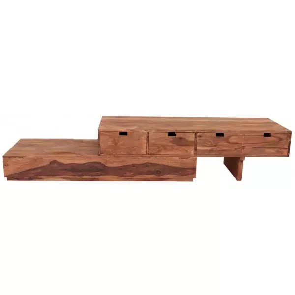 Each piece of TV-3 is unique due to its natural clear lacquer finish, which highlights the rich grain and warm tones of Sheesham wood. It’s perfect for people who want media furniture that combines scale, storage, and high-quality materials.